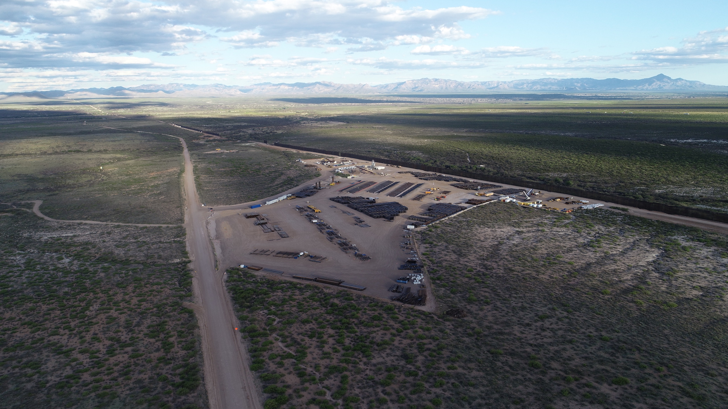 Bodega de materiales para construcción del muro fronterizo.