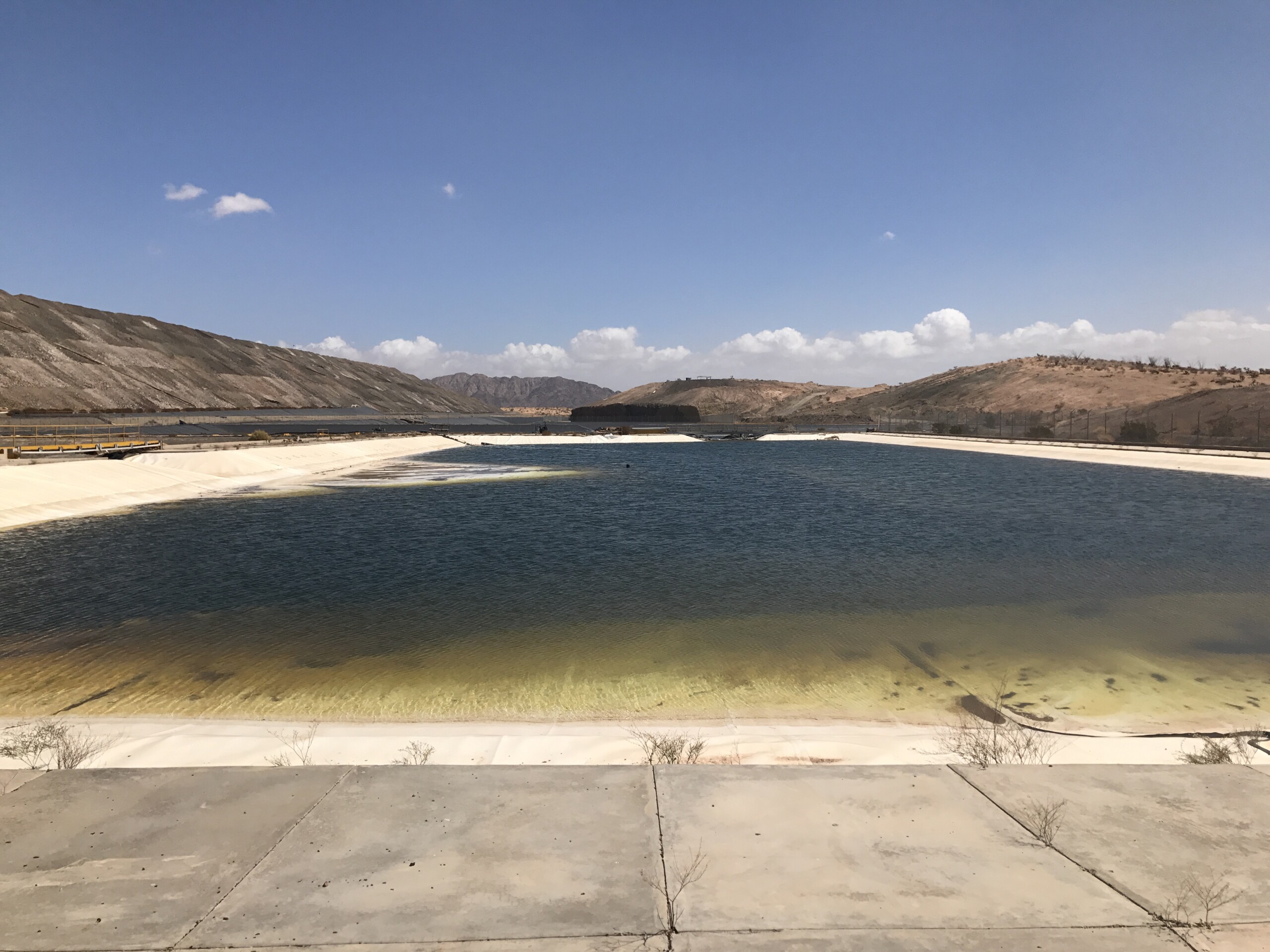Pila de lixiviación con solución de cianuro en la mina desalojada de Soledad- Dipolos, Ejido El Bajío.