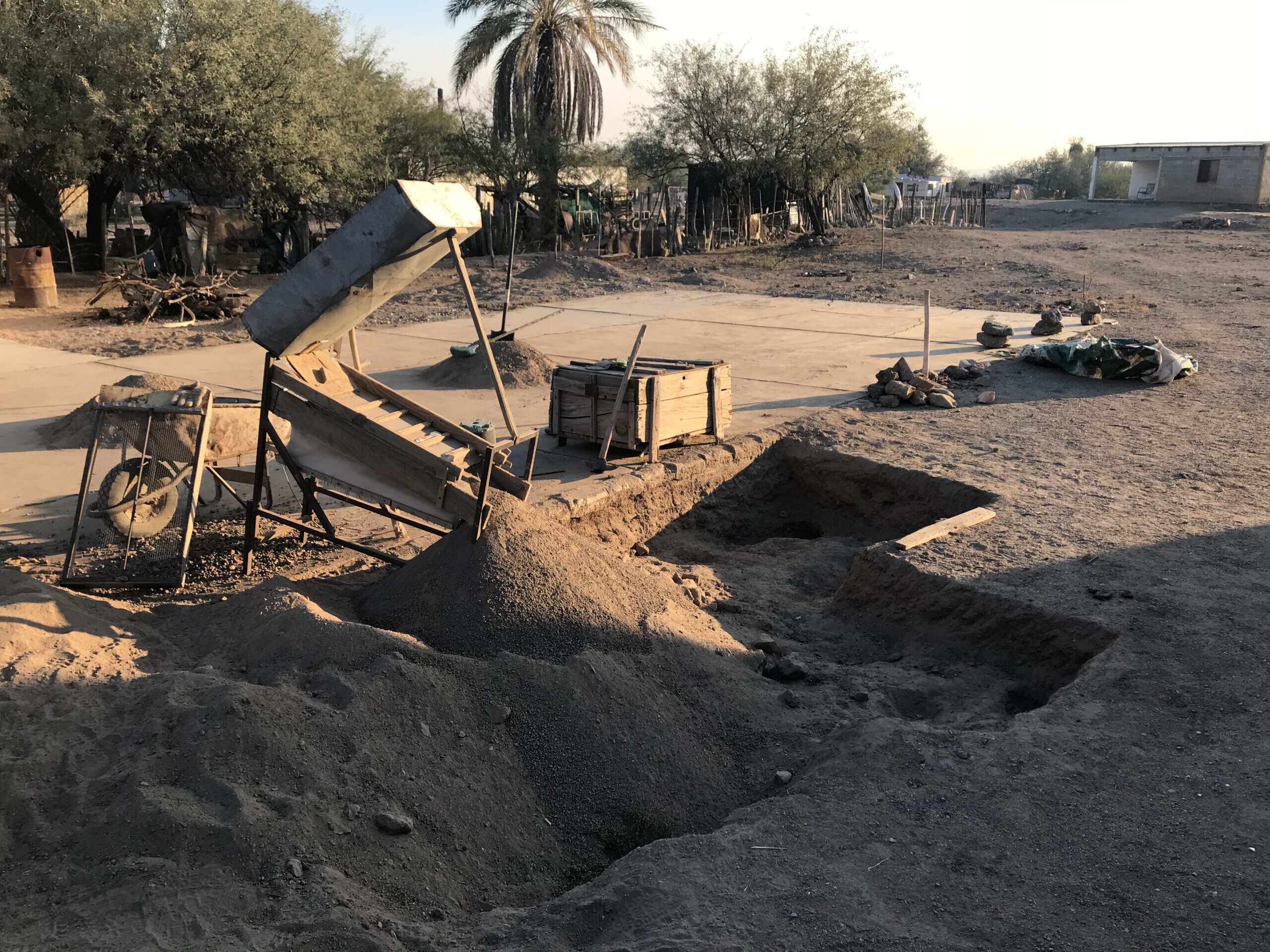 Criba para extracción artesanal de oro. Los gambusinos remueven las tierra de las calles del poblado y encuentran “chispas” de oro.